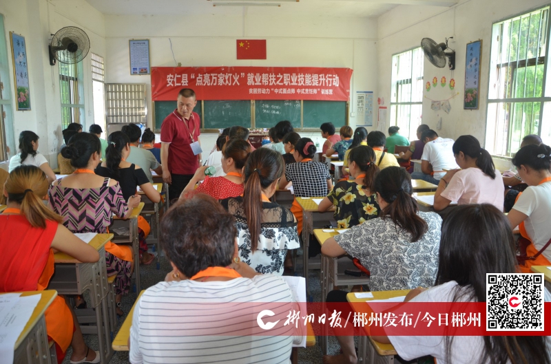 为了提高技术培训实效,安仁县就业服务中心通过结对帮扶,对全县162个村,特别是63个贫困村的16至59岁劳动力进行登记造册,实行“一人一卡一策一清单”的动态管理,有的放矢,把群众盼望什么与市场需求什么相结合,把课堂教与传帮带相结合,量身定制技术培训内容,把技术培训送进农家、放到田头、摆在车间,让群众学中干、干中学,使所学技术入脑入心,催生出自我创业的“内生动力”。2020年初以来,该县就业服务中心在全县所有贫困村和易地扶贫搬迁点进行了电子技术、汽车维修、烹饪厨师、育婴月嫂等实用技术培训班,培训人数近5000人,涌现出一大批经营能手、种养高手、创业强手。永乐江镇高陂村举办实用技能培训后,许多贫困户以村里的千亩荷花园为依托,发展乡村旅游产业,每年在赏花期间做烫皮米酒、餐饮等生意,日收入200元左右。