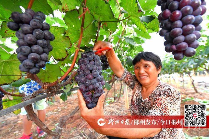 宜章今年第一批夏黑葡萄开始采摘