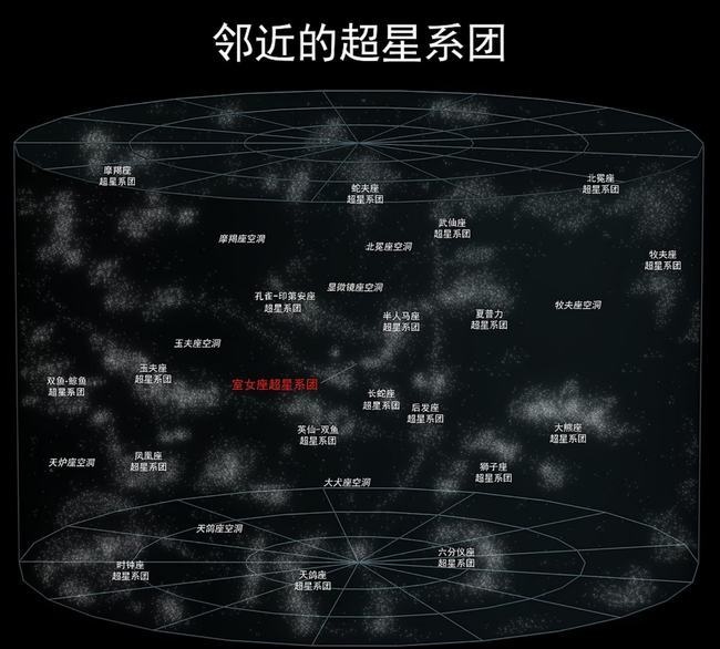 事实上,并非如此。室女座超星系团属于拉尼亚凯亚超星系团的一部分,这个拉尼亚凯亚超星系团直径达到了5.2亿光年,至少有10万个星系。而拉尼亚凯亚超星系团也不算大的,它只是双鱼-鲸鱼座超星系团复合体的一部分。双鱼-鲸鱼座超星系团复合体的长度达到了10亿光年,宽度达到了1.5亿光年。这看起来似乎要说到尽头了,但实际上还远远没有。