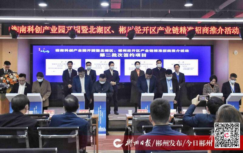 活动现场,北湖区与东莞宏恩电子科技、惠州恒生泰光电、长冲科创产业园等20个项目进行了集中签约,签约资金超53亿元,主要涉及电子信息、智能制造等产业。此外,北湖区、郴州经开区就产业链精准招商着重进行了推介。