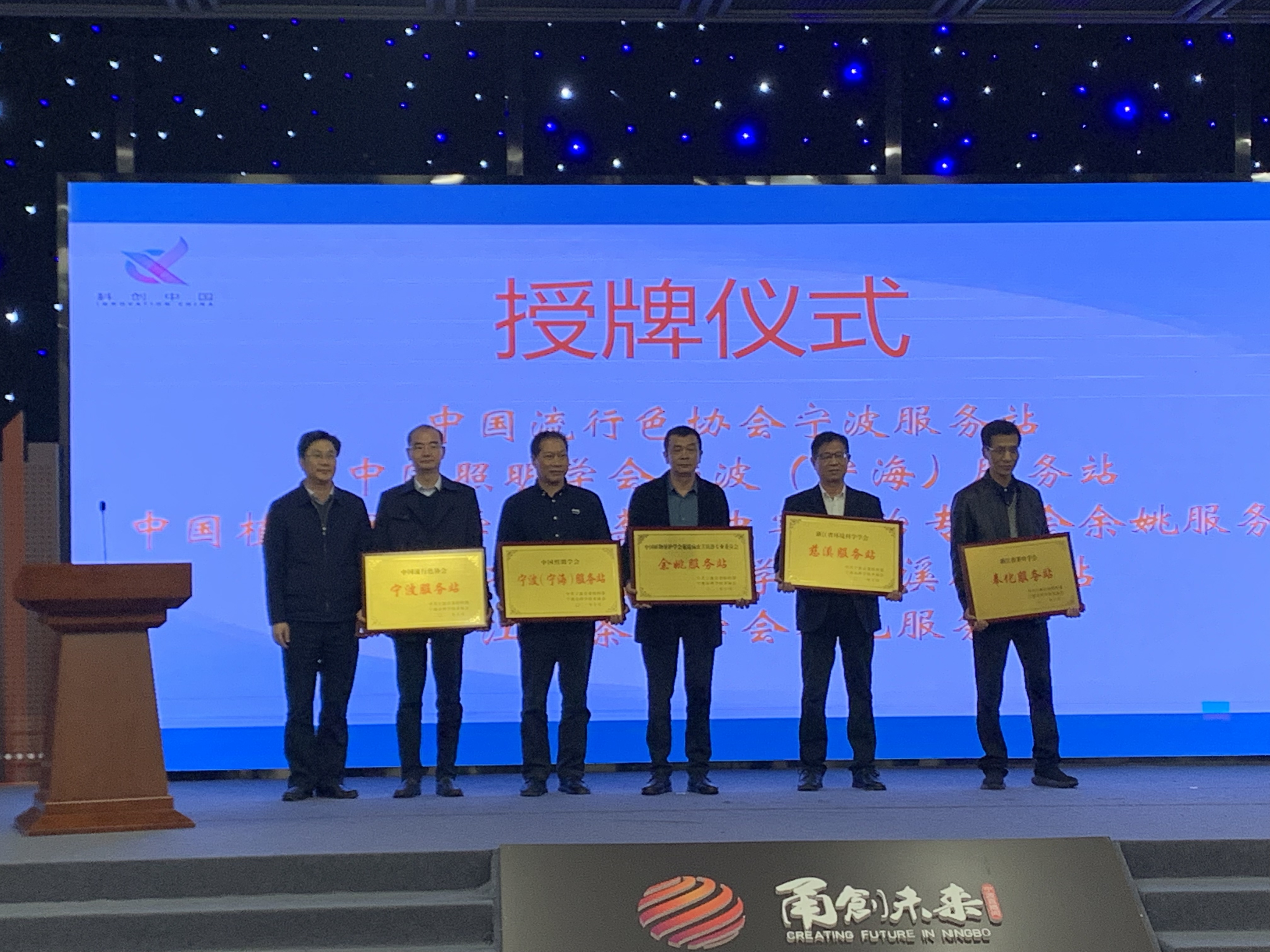 11月29日,市科协在宁波科学探索中心召开2021“科创中国·宁波”工作推进会,举行国家级学会宁波服务站授牌仪式,市科协党组书记方巍向宁波文具行业协会授予“中国流行色协会宁波服务站”名牌,协会秘书长俞勇锋应邀领牌,中国流行色协会副秘书长王振应邀出席会议鉴证授牌仪式。
