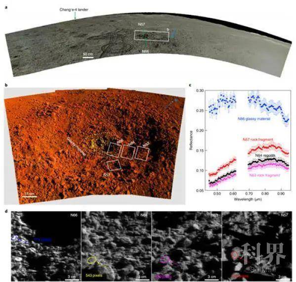 基于该撞击坑影像和光谱数据,研究团队发现,撞击坑中心的疑似“残留物”与坑内及坑外的典型月壤、岩石碎块的光谱呈现明显不同的特征。