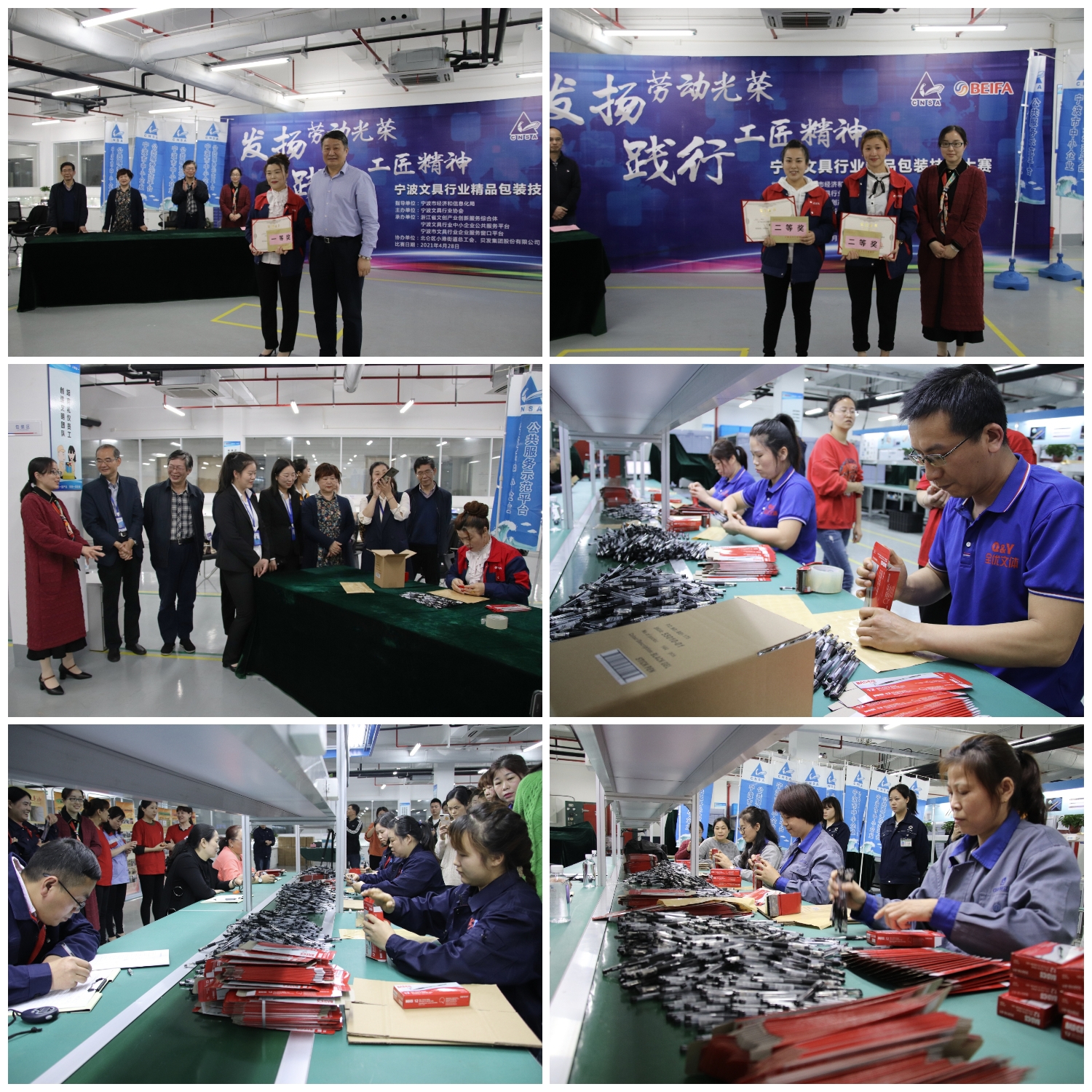 工匠精神是支撑文具制造、文具创造的重要力量。为喜迎五一劳动节,大力弘扬、培育工匠精神,为广大员工提供一个展示自我、切磋技艺的平台,强化文体用品产业技能人才的培养、选拔,助推宁波“246”千亿级文体用品产业集群建设,4月28日,由市经信局指导,宁波文具行业协会主办,浙江省文创产业创新服务综合体、宁波文具行业中小企业公共服务平台、窗口平台承办,协会名誉理事长单位贝发集团股份有限公司、北仑区小港街道总工会协办的宁波文具行业精品包装技能大赛,在贝发集团成功举办决赛。