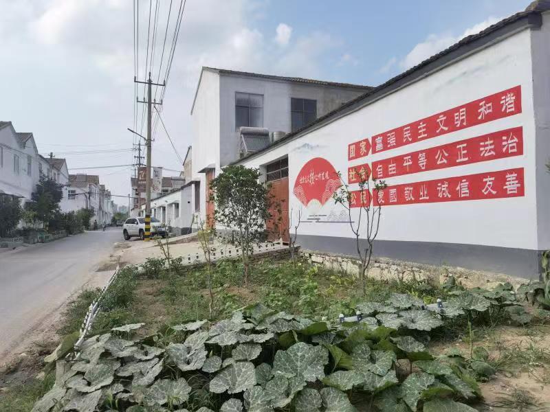 充分挖掘各涉农社区的文化底蕴,一个社区一个主题,突出节点氛围营造,利用村内主次干道、房前屋后、空闲地、河道两侧等区域栽种石榴、桃树等果树,紫薇、桂花等景观树及蔷薇、凌霄等爬藤类植物合计5万株,绿化面积达500亩。以建党100周年、社会公德家庭美德、中华传统优秀价值观为主题,对村内主干道两侧墙体进行彩绘和文化宣传,形成绿化美化、立体种植、烘托文化的美丽乡村“底色”。