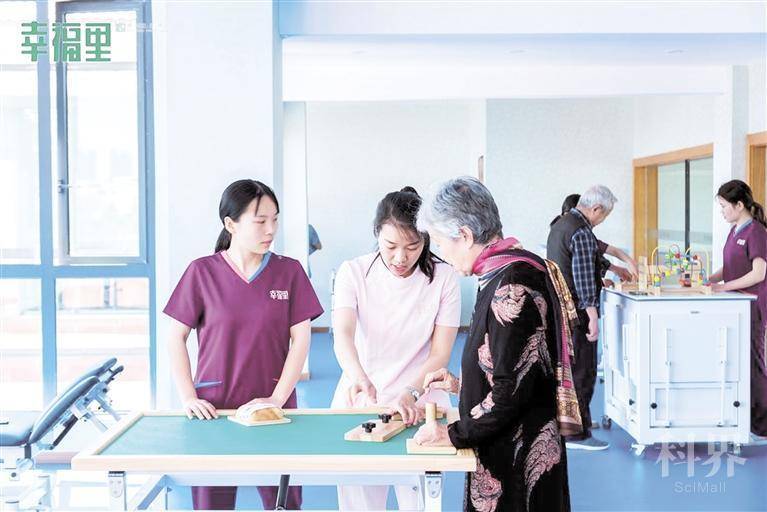 贵阳市南明区“幸福里长照之家”护理人员帮助老人做康复训练。