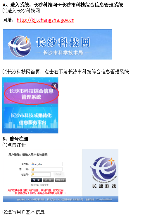 9、在长沙市科技综合信息系统内如何注册账号?