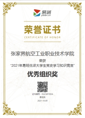 张家界航空职院在全国2021年易班优课大学生党史学习知识竞赛中荣获优秀组织奖