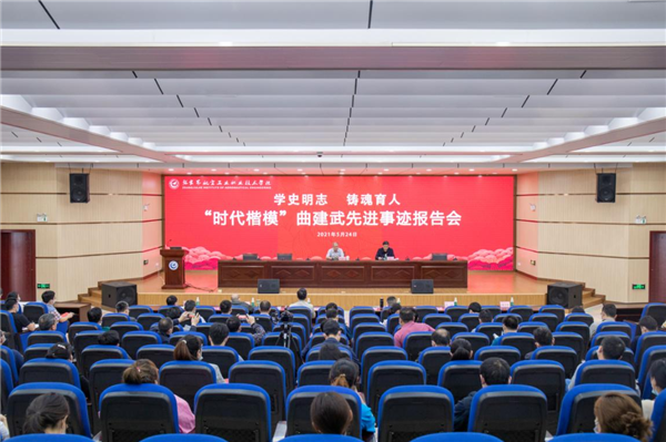 报告会上,曲建武以《学史增信铸魂育人》为题作专题报告,简要回顾了中国历史和中国共产党百年奋斗史,讲述了他长期从事学生辅导员工作的艰辛历程、主要事迹和不凡业绩,总结了从事高校辅导员工作的主要经验和做法,也为如何做好学生思想政治工作提供了很好的意见和建议。