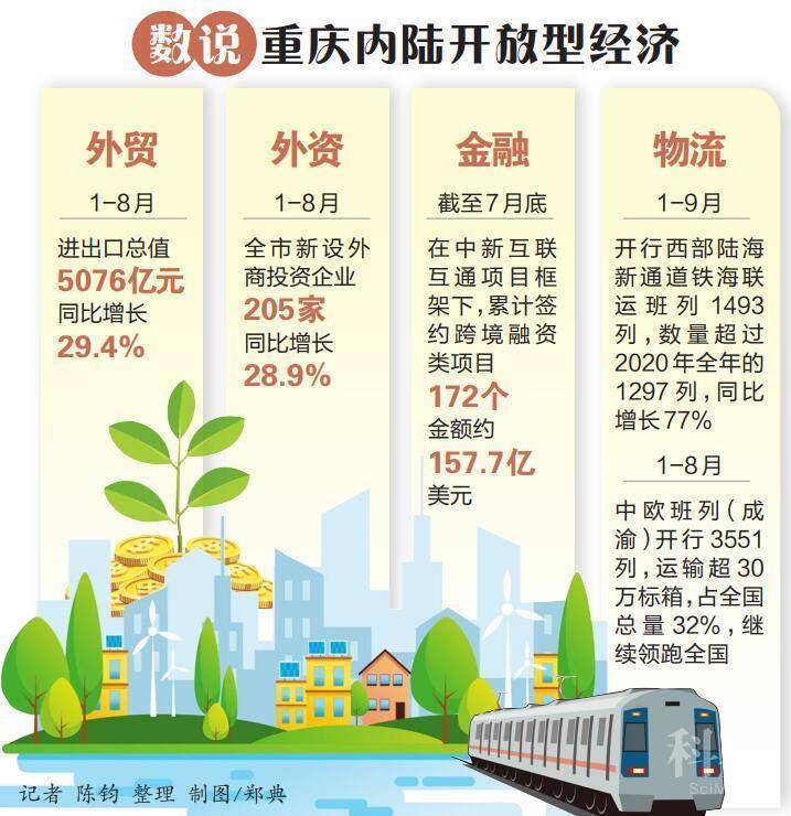 向西,今年前8个月,中欧班列(成渝)累计开行3551列,运输超30万标箱,占全国总量32%,继续领跑全国。