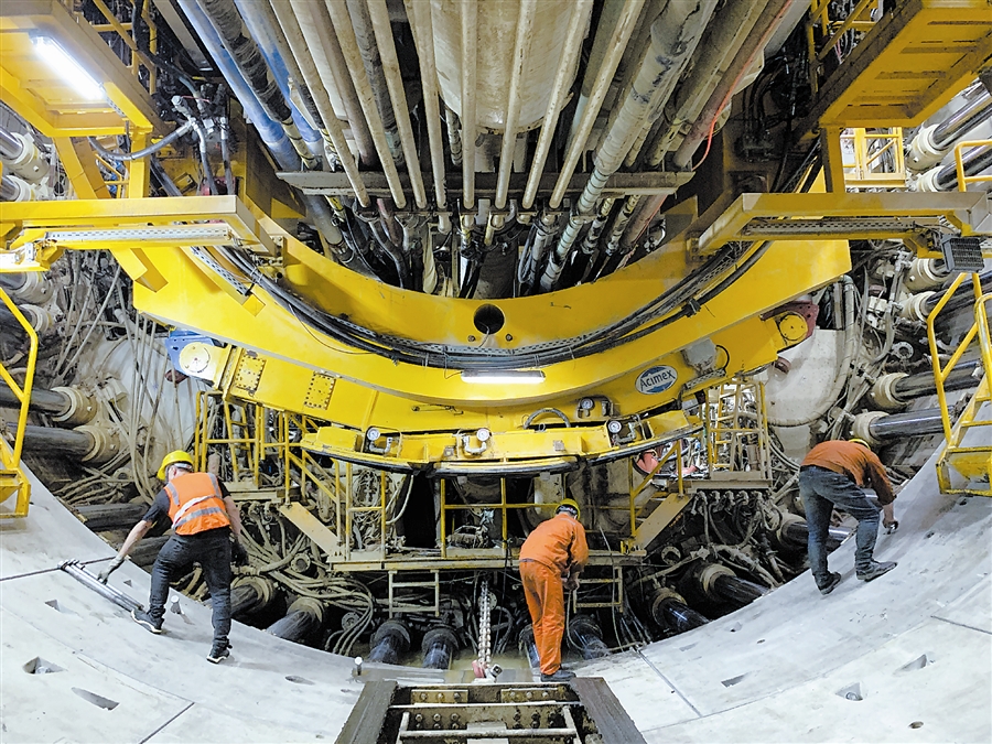 3.海底大盾构安装盾构前行轨排。
