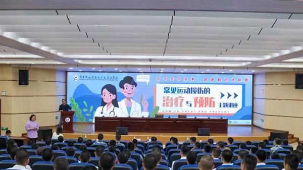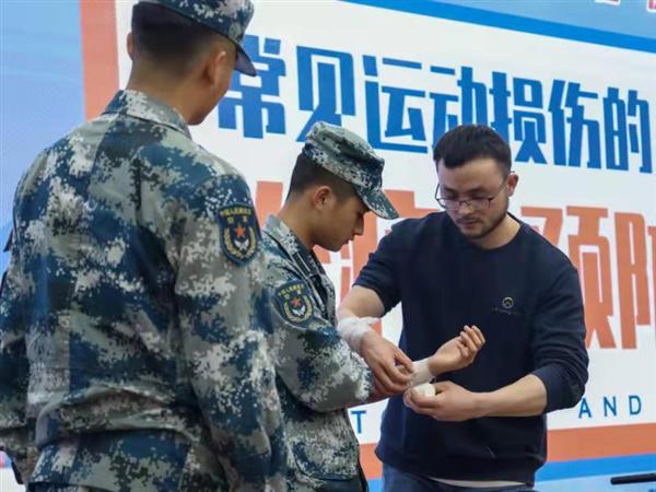 在常见运动损伤的治疗与预防主题讲座中,刘亮医生为士官班学生介绍腰部扭伤、肩关节损伤、膝关节韧带损伤等常见运动伤的治疗及预防,杨保台医生讲解和示范现场急救知识,姜平医生强调征兵入伍体检的注意事项,提醒广大士官生要重视体检内容,提前进行自我检查和预防调整,以健康的体格和强健的身体投入到学习和训练生活中。