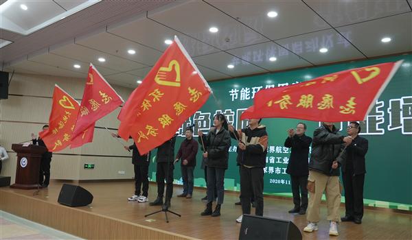 随后,志愿者代表现场宣读了《节能增效倡议书》,与会领导向团员青年代表发放宣传资料,并向节能环保志愿服务队授旗。