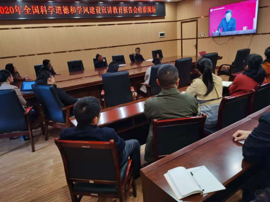 (通讯员:张放)11月20日下午,学院在图书馆2楼会议室设立分会场,集中收看2020年全国科学道德和学风建设宣讲教育报告会暨宣传月启动仪式网络直播,深入学习贯彻习近平新时代中国特色社会主义思想和党的十九届五中全会精神,弘扬科学家精神,加强作风和学风建设,着力推进科学道德和学风建设宣讲教育工作。副院长魏道德,学术委员会、科研处全体人员和部分师生代表在分会场集中学习,学院其他部门采用集中收看和个人自学相结合的方式组织收看学习。