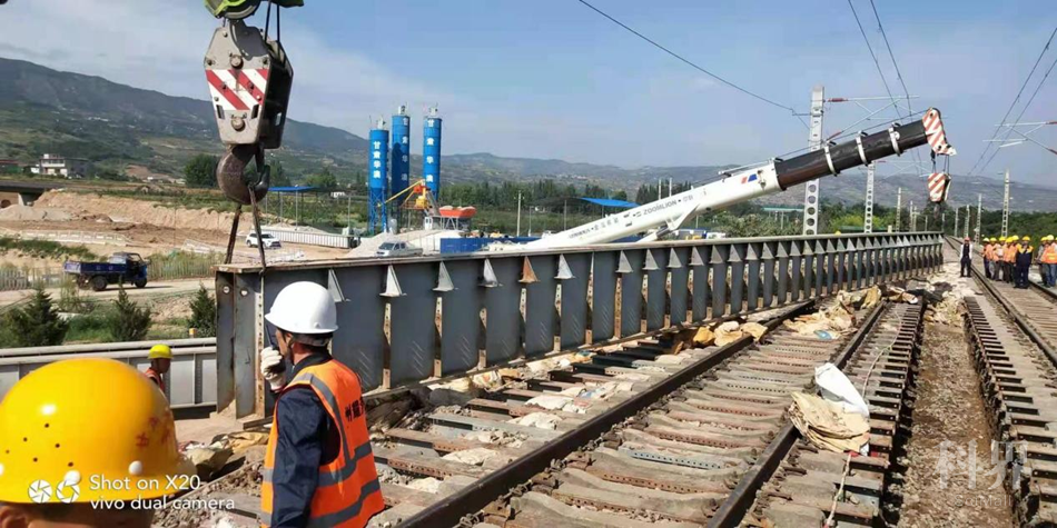 甘肃(天水)国际陆港环城东路下穿陇海铁路K1422四孔框架桥项目,规划红线宽度46米, 双向8车道,设计速度60km/h。第一阶段框架桥顶进采用D24+D24+D24型施工便梁加固线路,持续二十六天营业线“天窗”施工,先后完成了滑板铺设、框架浇筑、铁路桩基加密、D24型施工便梁梁槽清理、横梁穿设及纵梁吊装联结,最后进入框架桥单孔顶进工序。