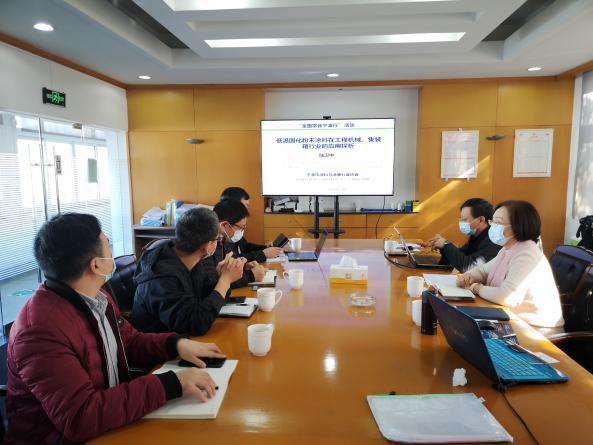 与南海化学公司技术副总张云伟、销售副总王洪辉、外贸部部长丁凤良、研发部长魏昌志针对产品配方、新产品研发方向、关键技术指标等进行交流和探讨,陆卫中教授级高工针对企业前期提出的难题特意制作了PPT进行了讲解
