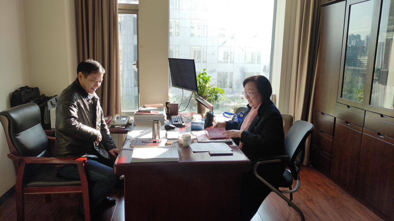 在办公室,吴晓明秘书长对杨建飞处长对协会工作的指导和支持表示感谢,汇报了协会近期在行业安全生产方面的工作,特别是国家应急管理部对从业危化品企业主要负责人学历的要求,协会经与国家开放大学对接,进行企业主要负责人在学历提升学习,应奉化应急局的要求,目前对不是我行业协会的会员单位也接受报名工作进行了通报,杨处长认真聆听了吴秘书长的汇报,对协会的工作表示认可和赞扬。危化品企业从业人员学历提升是当前亟待解决的难题,对宁波涂协主动与相关学院对接帮助企业相关人员学历提升工作是非常必要和及时的,并就对国家开放大学的学历提升报名信息加入了本局工作内容。同时,杨处长表示就协会准备举办的安全生产培训班,将会联系局政策法规处与协会对接,给予相应的帮助。