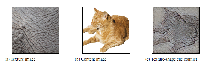 图1:(a)大象纹理图像;(b)猫图像;(c)用大象纹理取代猫皮毛纹理的图像。图片来源:#