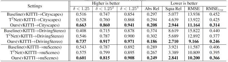 通过上述注意力模块,研究员们可以得到与深度相关的结构化表示。直接输入到深度估计网络中,便可进行深度预测,从而在不同领域之间进行迁移。
