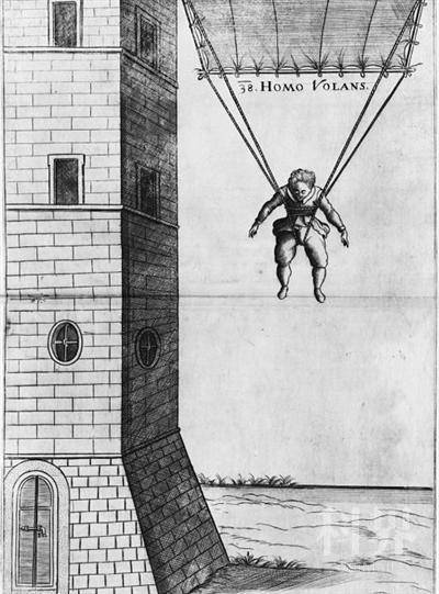 福斯特的最著名发明是降落伞。《新机械》一书中有一个人背着降落伞下落的示意图。在福斯特65岁那年,他亲自背着降落伞从威尼斯著名的圣马可钟楼上跳下,证实了降落伞的可用性。不过,有很多人错误地以为是达·芬奇发明了降落伞。除了降落伞之外,桥梁和磨坊是书中突出叙述的两大类。