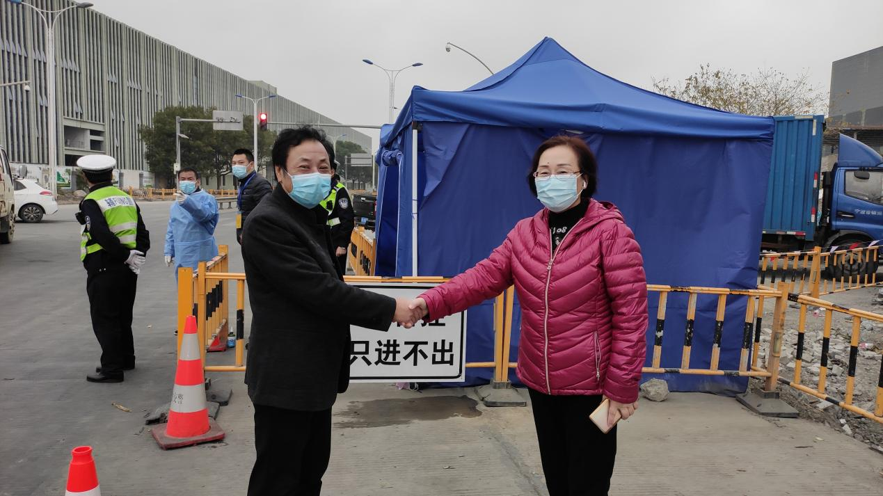 12月12日上午,宁波鼎宏柒彩供应链管理有限公司紧急前往商城采购急需的保暖棉被50床,下午在协会秘书长的带领宁波鼎宏柒彩供应链管理有限公司的两位党员和宁波涂协党支部的党员一同冒着寒冷的细雨一起赶赴疫情卡口,与镇海区九龙湖镇党政办主王康杰主任、财政所董所长完成物资交接,为打赢这场疫情阻击战贡献爱心捐赠。