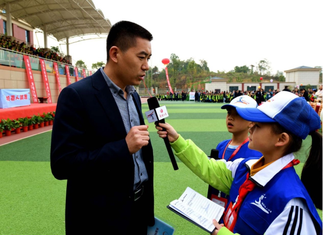 岳阳市科技馆副馆长耿长征接受学校小记者采访