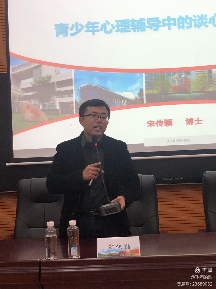 年轻幽默的宋传颖博士在和大家的互动游戏中开始了他的讲座。青少年思维活跃,竟争和自我意识强,同时以自我为中心明显;他们深受新媒体影响,孤独感重。青少年心理辅导中的谈心谈话就显得尤为重要。什么是谈心谈话?为什么谈心谈话?如何谈心谈话?宋博士通过丰富的案例让学员们理清了概念,明确了目标,掌握了策略。在与青少年进行谈心谈话时,我们要学会倾听、共情,利用非言语、积极关注学生、传递积极的理念。会谈心谈话者可以做到声声入耳,句句入心,达到润物细无声的效果。