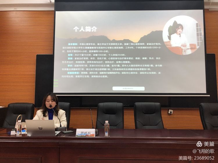 郭老师讲述了自己如何由一名高三语文老师华丽转身成为一名心育人的经历,让学员们找好自己的定位,在各自的工作中主动有为;加强阵地建设,保证心理健康教育基础设施,营造心理健康教育氛围。