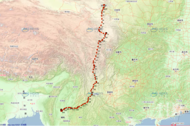 9月29日16时,黑鹳成功安装背负式卫星定位追踪器。9月30日13时,黑鹳被运输至巢穴附近实施野外放归,实时跟踪正式启动。从我国青海省一路飞往缅甸,黑鹳“鸟过留痕”,其迁徙路径、停留地点、飞行海拔高度、飞翔时间被精准监测记录。