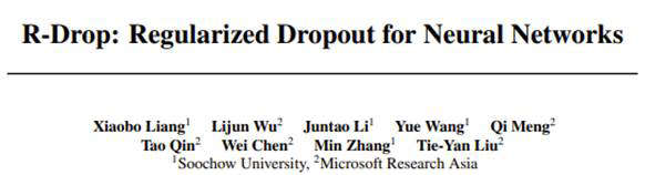近日,微软亚洲研究院与苏州大学在 Dropout [1] 的基础上提出了进一步的正则方法:Regularized Dropout,简称R-Drop。与传统作用于神经元(Dropout)或者模型参数(DropConnect [2])上的约束方法不同,R-Drop 作用于模型的输出层,弥补了 Dropout 在训练和测试时的不一致性。简单来说就是在每个 mini-batch 中,每个数据样本过两次带有 Dropout 的同一个模型,R-Drop 再使用 KL-divergence 约束两次的输出一致。所以,R-Drop 约束了由于 Dropout 带来的两个随机子模型的输出一致性。