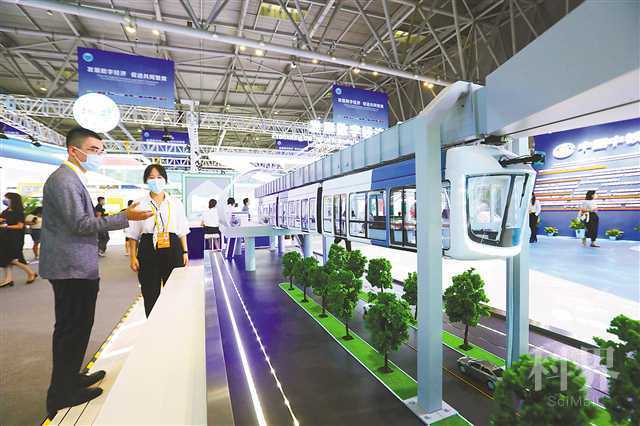 8月23日,我国自主研发的悬挂式单轨列车“开进”展会现场。 记者 罗斌 摄/视觉重庆