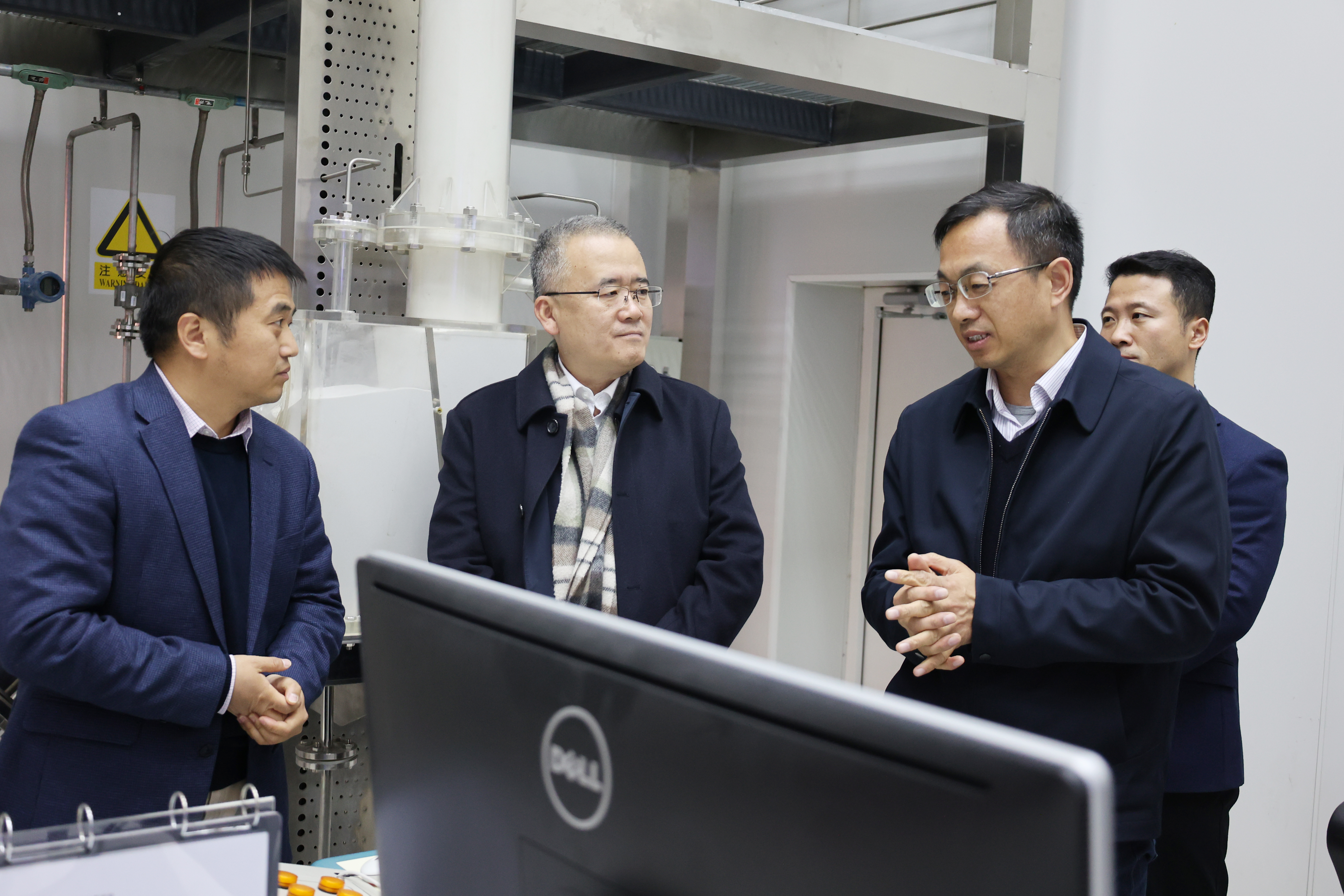 孟庆海一行还参观了多相复杂系统国家重点实验室,王利民研究员介绍到,虚拟过程工程平台提供了对典型工业装置内流动规律与传递过程的三维实时高精度模拟,可以实时预测工业反应器中物质的流动和传递过程。