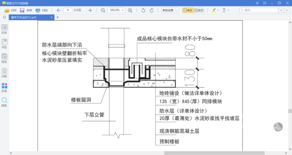 核心模块埋设于楼板之内,是连接废水同排模块和污水同排模块、排水立管及防水层的集成部件。
