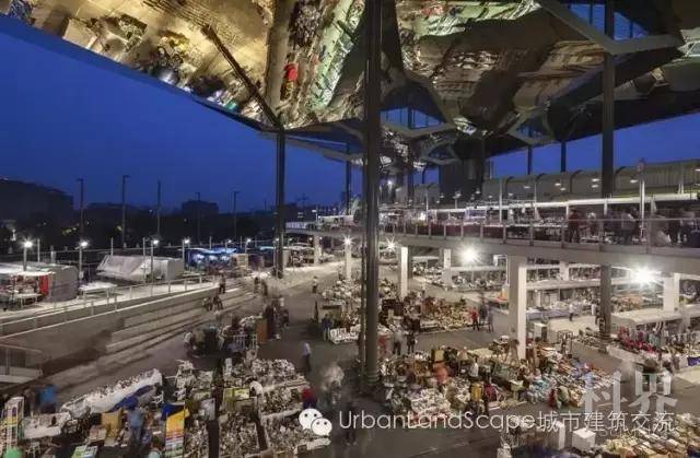 “圣安东尼”这个名字源于巴塞罗那古老的城门,最初市集设立在热闹的城门脚下而得名。1882年,一个固定的食品市场建立起来,在其周围依附着跳蚤市场和书市,三者共同构成了新的“圣安东尼”市场并延续至今。或许因为圣安东尼书市的商品以书画为主,一个靠谱的遮蔽物显得尤为重要。在改造更新的大潮中,RavetllatRibas Architects事务所为它设计了一个可变化的钢构覆盖,并于2012年完工。