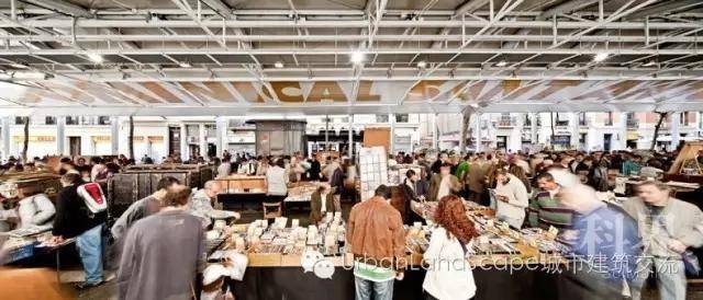 城市的更新改造除了翻新与扩张两种手段之外,尚有对城市公共场所加以复合利用这一高效、集约的举措。许多露天市场并不像光辉广场跳蚤市场那样拥有一块独立的场地,而是依附城市公共空间而设。最常见的是占用广场和街道的露天市场,圣安东尼周日书市就是一座“街道市场”。