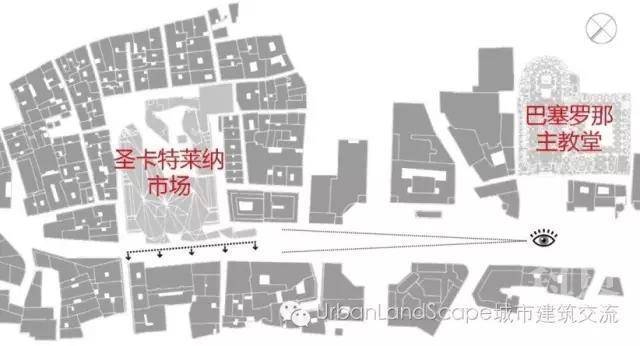 图7 圣卡特莱纳市场与主教堂区域总平面