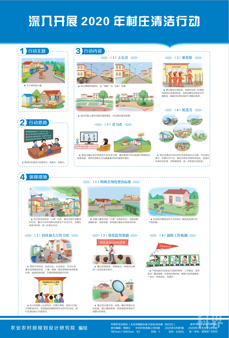 本系列挂图以干干净净迎小康为主题,推动村庄清洁行动常态化、制度化、持续化为行动思路,对2020年村庄行动的行动内容以及保障措施2个方面进行了重点介绍,提出以“立足清”、“聚焦保”、“着力改”“促进美”为行动内容,以“明确差别化政治标准”、“持续加大宣传力度”、“强化监督激励”、“创新工作机制”为保障措施,为2020年深入开展村庄行动起到一定借鉴指导作用。