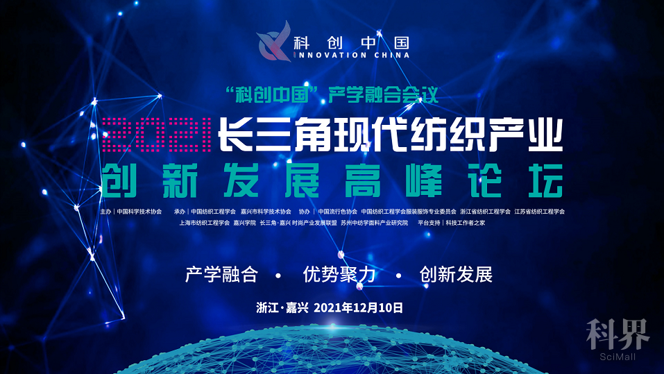 中国科协党组书记、副主席张玉卓在主持召开科技经济融合工作领导小组专题会时强调“科创中国工作要从创品牌向求实效转变、从搭平台向植内涵转变、从扩面向提质转变、从提供场景向营造生态转变”,本次论坛将根据中国科协领导的最新指示,按照近期印发的“中国科协关于支撑构建新发展格局的意见”和“十四五时期推进科协系统深化改革重点任务工作方案”,全面贯彻落实中国科协“科创中国”试点城市建设要求,全方位、宽领域、多层次推进科技经济融合,集聚创新要素,促进“科创中国”创新枢纽城市嘉兴市现代纺织产业的高质量发展,并于2021年12月10日(周五)在嘉兴举办以“产学融合、优势聚力、创新发展”为主题的长三角现代纺织产业创新发展高峰论”。论坛由中国科学技术协会主办,中国纺织工程学会、嘉兴市科学技术协会联合承办。