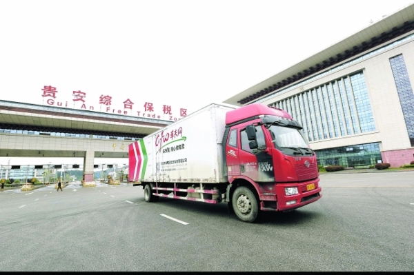 12月4日,一辆车夫网物流车驶出贵安综合保税区。