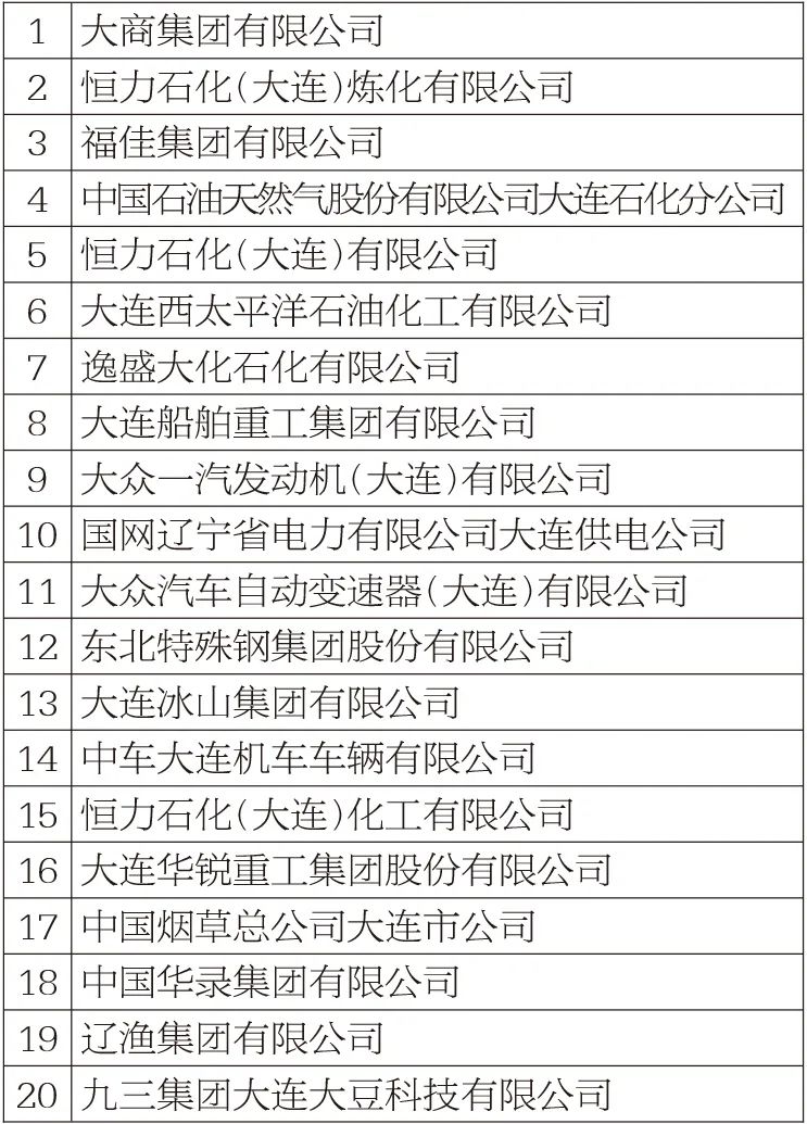 为推动我市企业做强做优做大,促进我市经济高质量发展,今日,大连市企业联合会、大连市企业家协会发布2020年度大连市企业100强榜单。这一榜单是按照国际惯例和中国企联500强排序办法,在企业申报和有关部门审核基础上,以企业2020年度营业收入为依据进行排序的。据悉,这是大连市企业联合会、大连市企业家协会连续第16次发布大连市企业年度100强榜单。大连市工业和信息化局、大连市企业联合会同时发布2020年度省市企业管理创新(进步)成果获奖企业名单。