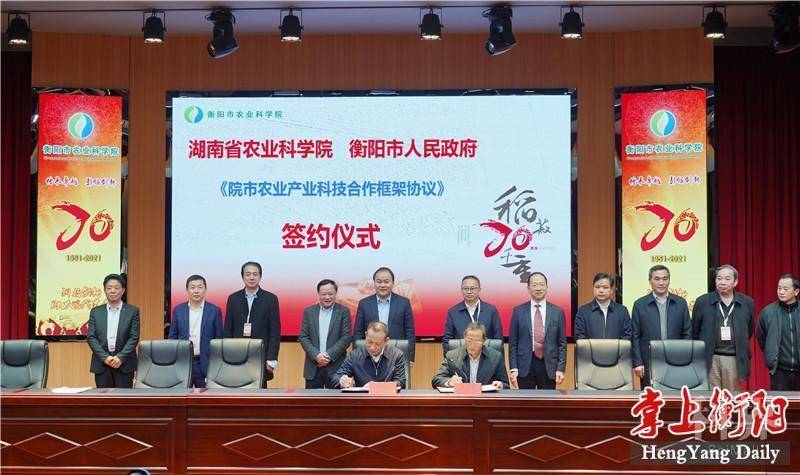 活动现场,省农业科学院副院长邓华凤、副市长彭玉明分别代表湖南省农业科学院、衡阳市人民政府签订《院市农业产业科技合作框架协议》,双方将在平台基地共建、科技协同创新、人才队伍培育、科技成果转化等领域展开深度合作,助推衡阳农业十大百亿产业发展。衡阳市农业科学院与多个合作单位签订了《科企合作与成果转化协议》。
