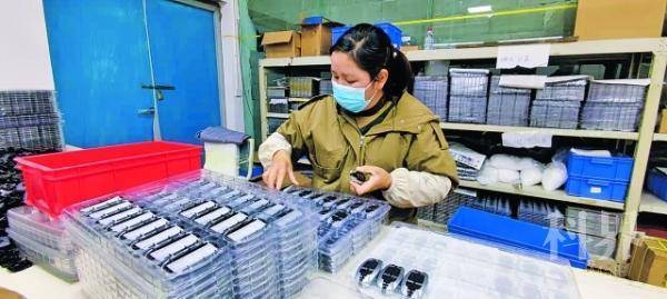 图为车间工人在进行智能钥匙组装。