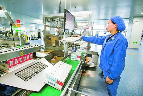 国药同济堂生产车间内,工作人员在操作设备。