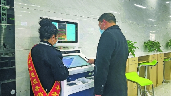 记者在大厅看到,身着制服的工作人员有的引导办事群众,有的为群众耐心解答操作中遇到的问题;现场办理业务的老人较多,工作人员耐心地带着老人一步步操作。