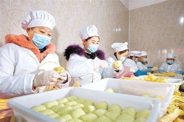 12月19日,在黔西市锦绣街道金凤社区一家传统黄粑制作坊里,村民赶制黄粑供应新年市场。
