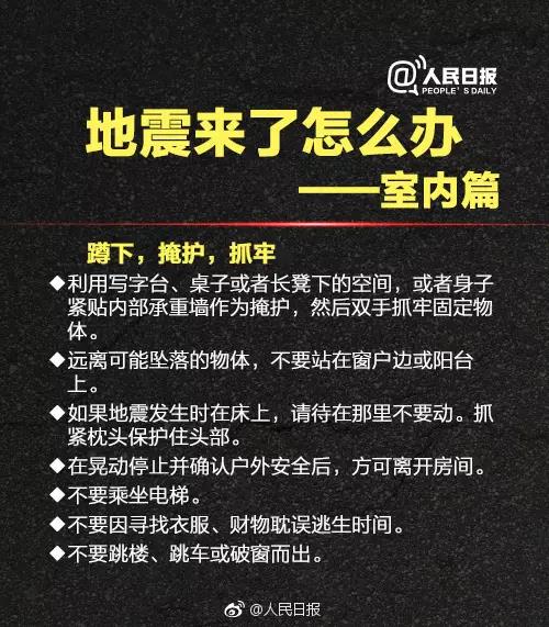 灾难一旦发生,生死存亡就在瞬息之间。地震来时如何躲避?如何自救?最权威地震逃生手册,多一次转发,可能就多挽救一条生命!随手扩散!