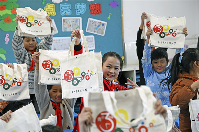 12月16日,郑陆镇牟家村村民尤玉芳来到村委,兴冲冲地领取了大米——每人每年100斤。