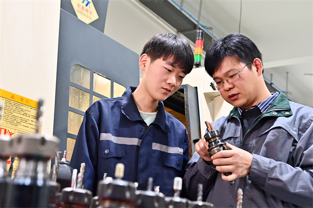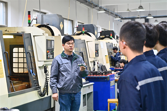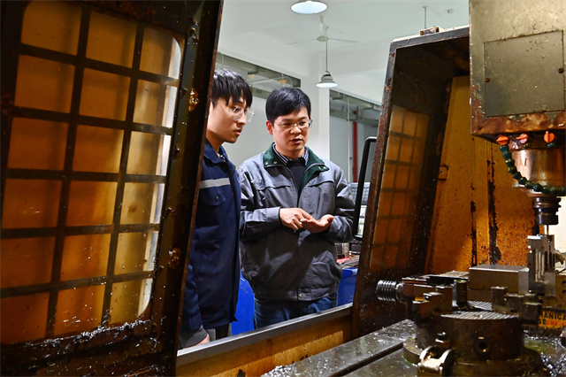 “职业技能学校,培养的就是动手能力。我好动,碰到新鲜事物都喜欢探个究竟。”朱龙飞说,刚工作时,他被分配到新产品研发部门,碰到的第一个棘手问题是复杂轮廓深孔加工难题。从材料试验到热处理试验,再到加工试制,一整套工序反反复复试了不知道多少遍,努力了3个月最后总算找到了合适的加工方法。这项复杂轮廓深孔加工的技术,还被广泛应用于其他类似的产品加工中,企业对他充分肯定,这也让他信心倍增。