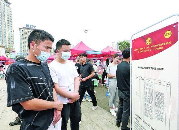 在贵安新区数字经济产业园广场举行的招聘会,吸引众多高校毕业生求职。