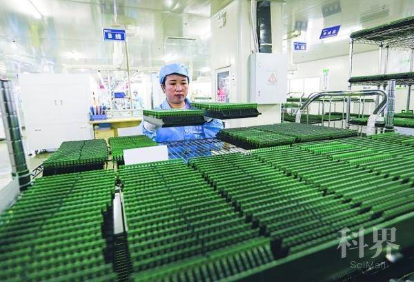 贵州全安密灵科技有限公司生产车间,工人在生产线上组装芯片。