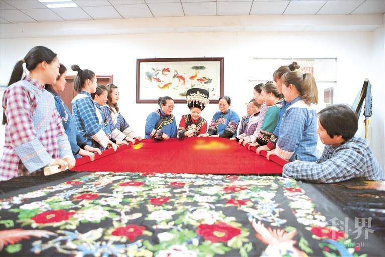 在建行贷款支持下,贵州松桃梵净山苗族文化旅游产品开发有限公司发展得风生水起。图为该公司董事长石丽平在为绣娘传授技艺。